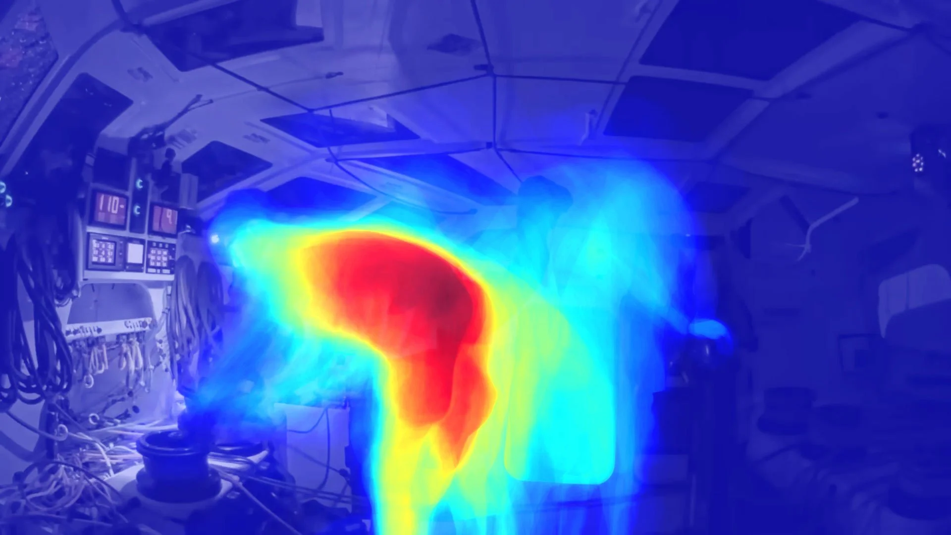 Heatmaps are powerful visual tools that help analyze and interpret the skipper’s movements and behaviors on board. Position heatmap made using the last sample videoclip shows in red highlights the areas where the skipper spends most of their time, while blue indicates zones they never use. This visualization makes it easy to identify hotspots of activity, flow zones, and wasted space.